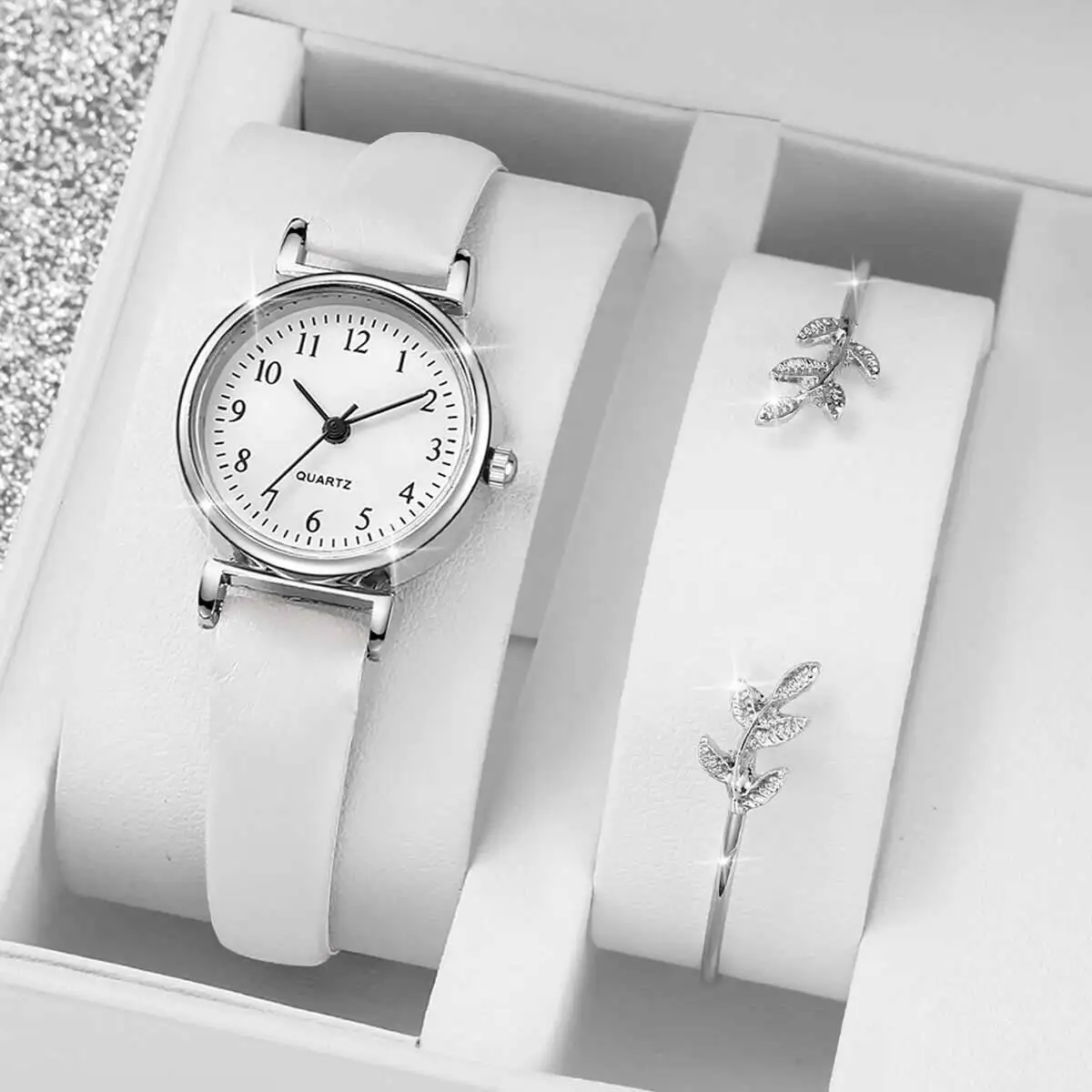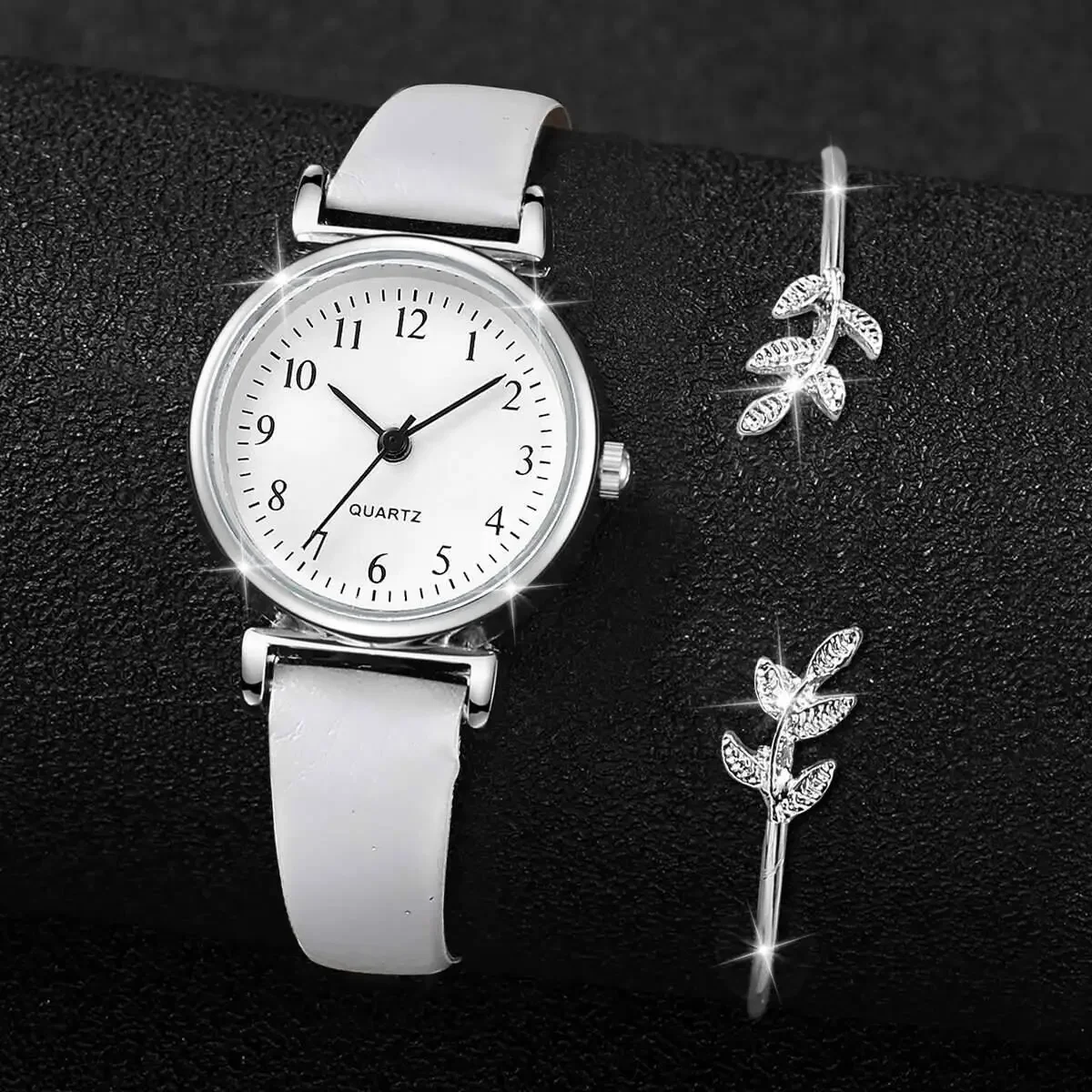 Women’s Fashion Watch & Bracelet Set – Leather Strap