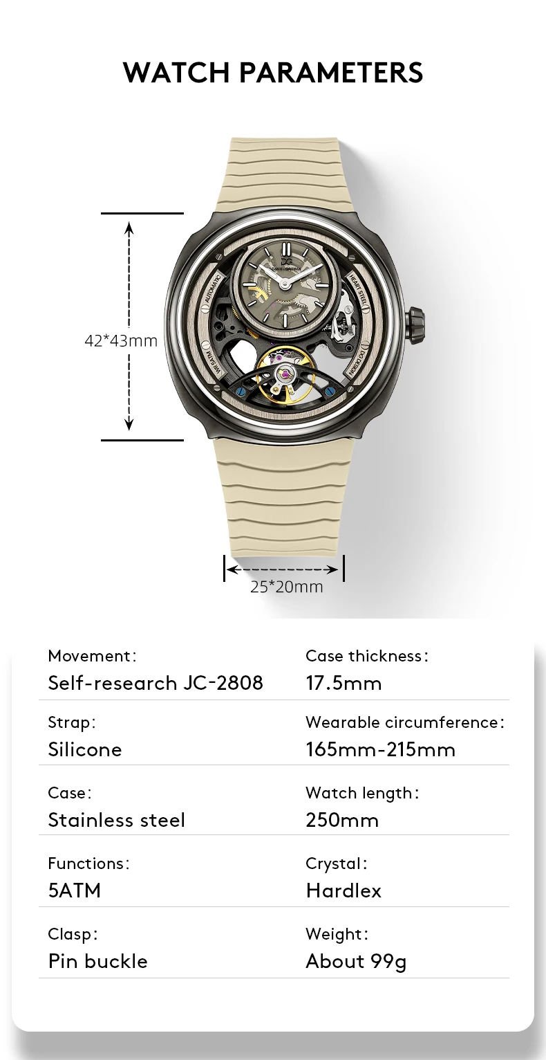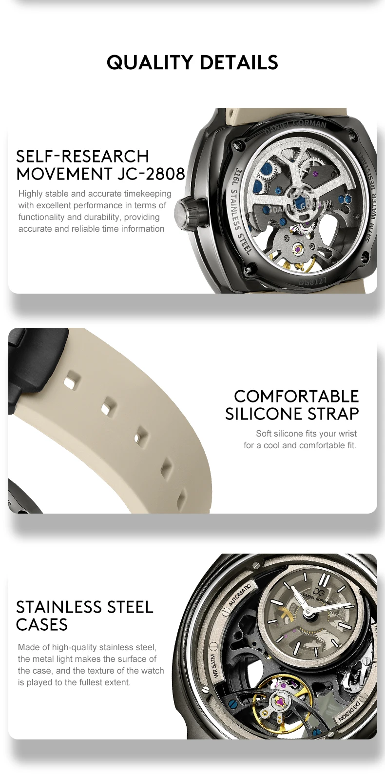 DANIEL GORMAN Men’s Automatic Watch – Sports Silicone Strap, 5 ATM Waterproof, Mechanical