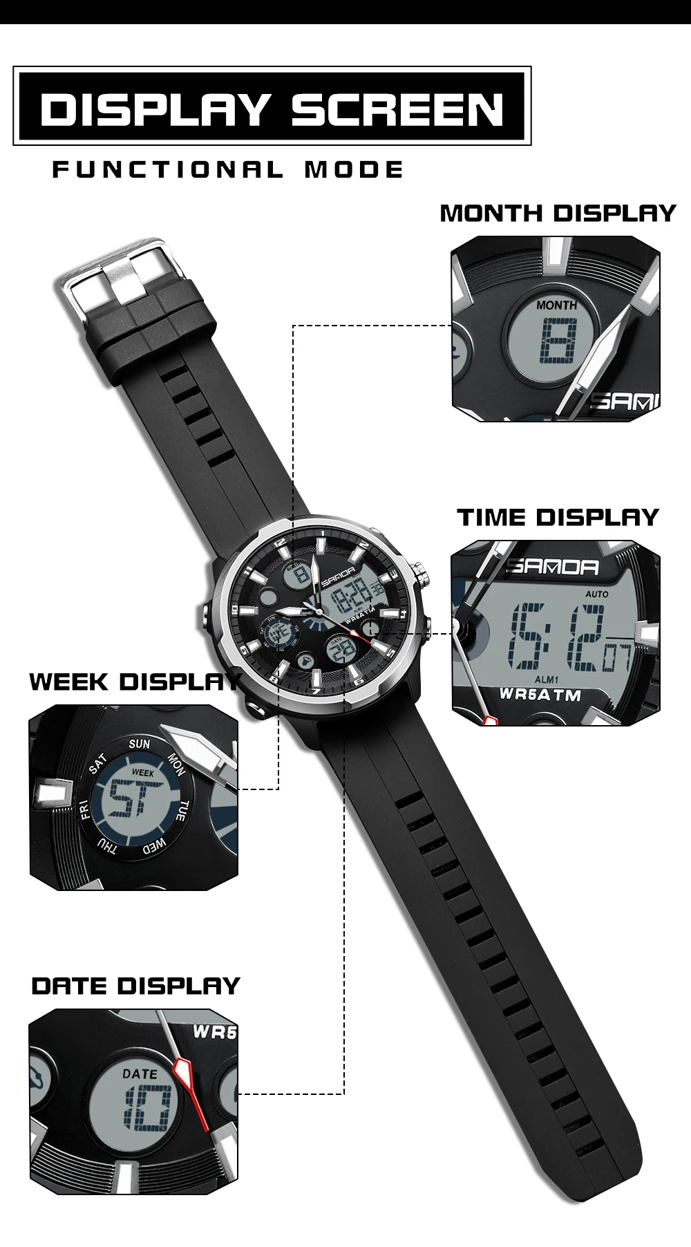 SANDA 9053 Dual-Display Sports Watch – 50M Waterproof